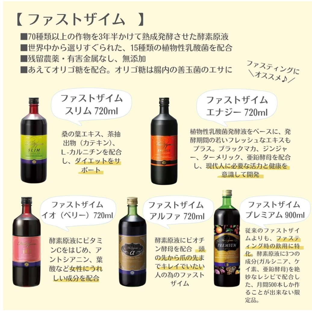 特におすすめはアルファ。これ一本あれば3日間ファスティングも軽くクリア。ブームになったプロラボのファスティングの場合3本(計30,000円税別)使う計算になるので、成分の濃さとコスパが全然違いますよ!
